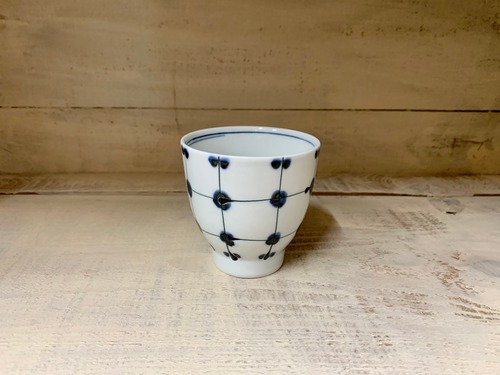 優しさ点格子の柄が愛らしいお湯呑です。